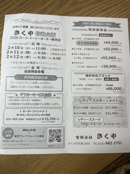 山形屋スーツ開催2月10日(火)11日(水)12日(木)